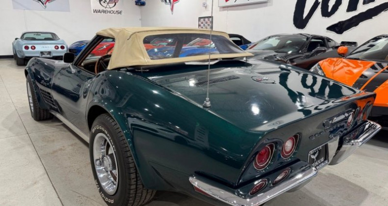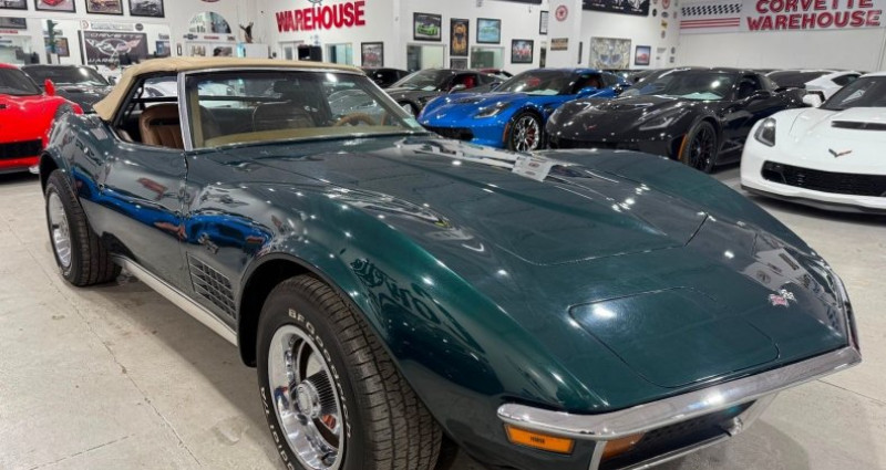 1972 chevrolet corvetteconvertiblerwd350ci/l-48automaticair conditioningpower steeringpower brakeschrome bumpersdual exhaustremovable tan soft toprally wheels with trim ringsoriginal motororiginal transmissionoriginal drivetrainoriginal am/fm radio22, 890 milescomplete frame-on restorationhunter green exteriorsaddle interiornew shocksnew power brake systemnew tiresnew batteryperfect paint and bodyworkinterior looks and feels like a time capsuledrives, moves, and feels like a brand new 1972last of the chrome-bumper convertiblesstart of a new horsepower rating systemlast year for the iconic chrome front and rear bumpersstart of the net horsepower rating eralower production numbers in 1972, especially for convertiblesa snapshot of the end of an eravalues continue to climbexcellent showroom conditionwell preservedfinancing availableall trades welcomecontact for warranty detailscorvette dealercorvette warehouse dallassells unique, low mileage, showroom condition used corvetteshigh volume/low pricing business strategy since 1996sold over 23, 000 used corvettesteam can help with trade-ins, financing, product knowledge, and anything related to corvettesnationwide deliveryavailable by phone, text, email, or in-showroom appointmentspayment optionscashier's check/money orderall sales transactions must be completed within 7 calendar days of auction closeprices are subject to change without noticeit is the sole responsibility of the customer to verify the existence of options, accessories and the vehicle condition before time of saleno expressed or implied warranties, including the availability or condition of the equipment listed is madeepa mileage estimates are for comparison purposes onlyactual mileage may vary depending on driving conditions, driving habits, and vehicle maintenancefees and taxesstate or local taxes, title, license fee, processing fees, registration fee, dealer documentary fee, finance charges, emission testing fees, and compliance fees are additional to the advertised price.. provenance : texas. disponibilité : environ 7 semaines, clés en main. 43 000 € tout compris (importation, taxes, procédure d'immatriculation). annonce publiée le 02/12/2025
