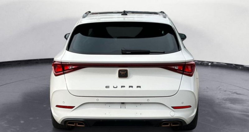 ======= options ======= alarme antivol avec dispositif de sécurité safe pack drive assist l pack drive assist m pack drive assist xl toit ouvrant panoramique ======= equipements de serie ======= accès et démarrage mains-libres accoudoir central caméra de recul ciel de pavillon noir clignotants à défilement et cérémonie de bienvenue ar climatisation automatique climatronic tri-zone connectivity box avec amplification du signal et chargeur à induction détecteur de pluie et allumage automatique des projecteurs digital cockpit : combiné d instruments digital haute résolution couleur de 10,25 direction dynamique dossiers de banquette ar rabattables 2 3 1 3 eclairage d'ambiance personnalisable feux arrière led avec bandeau infinite light full link avec carplay sans fil hayon électrique + fonction virtual pedal jantes alliage 19 palm springs kit de réparation pneumatique park-assist avec aide au stationnement avant et arrière peinture blanc candy projecteurs antibrouillard avec cornering light et coming home projecteurs full led régulation adaptative du chassis dcc radio numérique dab rails de toit noir glossy seuils de porte cupra rétro-éclairés sièges baquets similicuir tissu noir avec surpiqûres copper système audio 7 hp avec contrôle vocal hola hola système de navigation 3d sur écran tactile hd 10 vitres arrière surteintées volant cupra chauffant nb. vitesses : 6 conso mixte : l/100